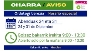 Durante las Navidades, los garbigunes estarán abiertos y mantendran su horario habitual, pero con algunas modificaciones.